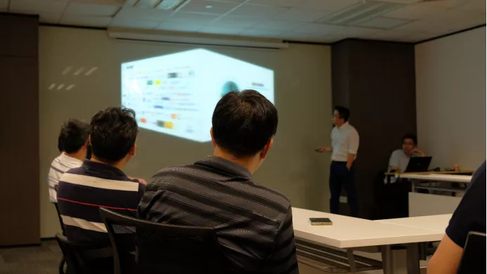 給嘉賓介紹英拿科技的業(yè)務(wù)
